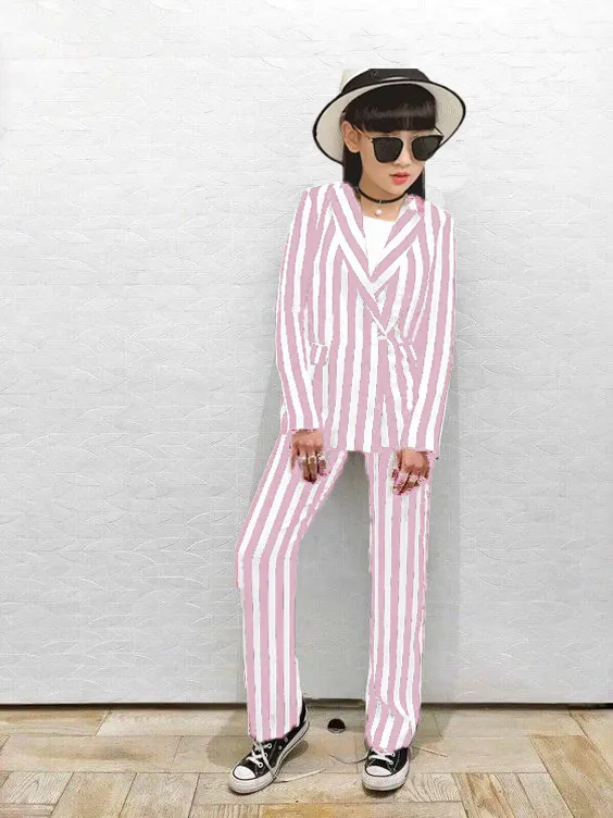 2pcs coat+pent with full sleeve strip dress for girls and boys