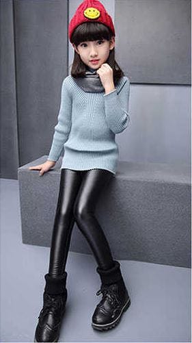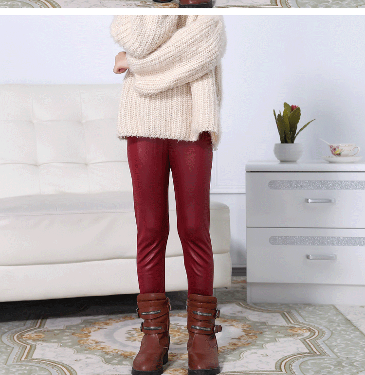 Home Girls Leggings Casual style pattern leather tights inside furr for girls