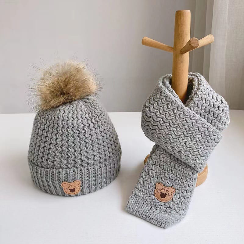 Kids caps online cap and scarves 2-piece set warm for boys and girls bear wool for comfort