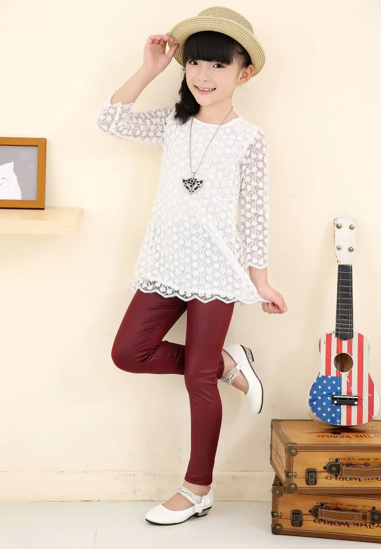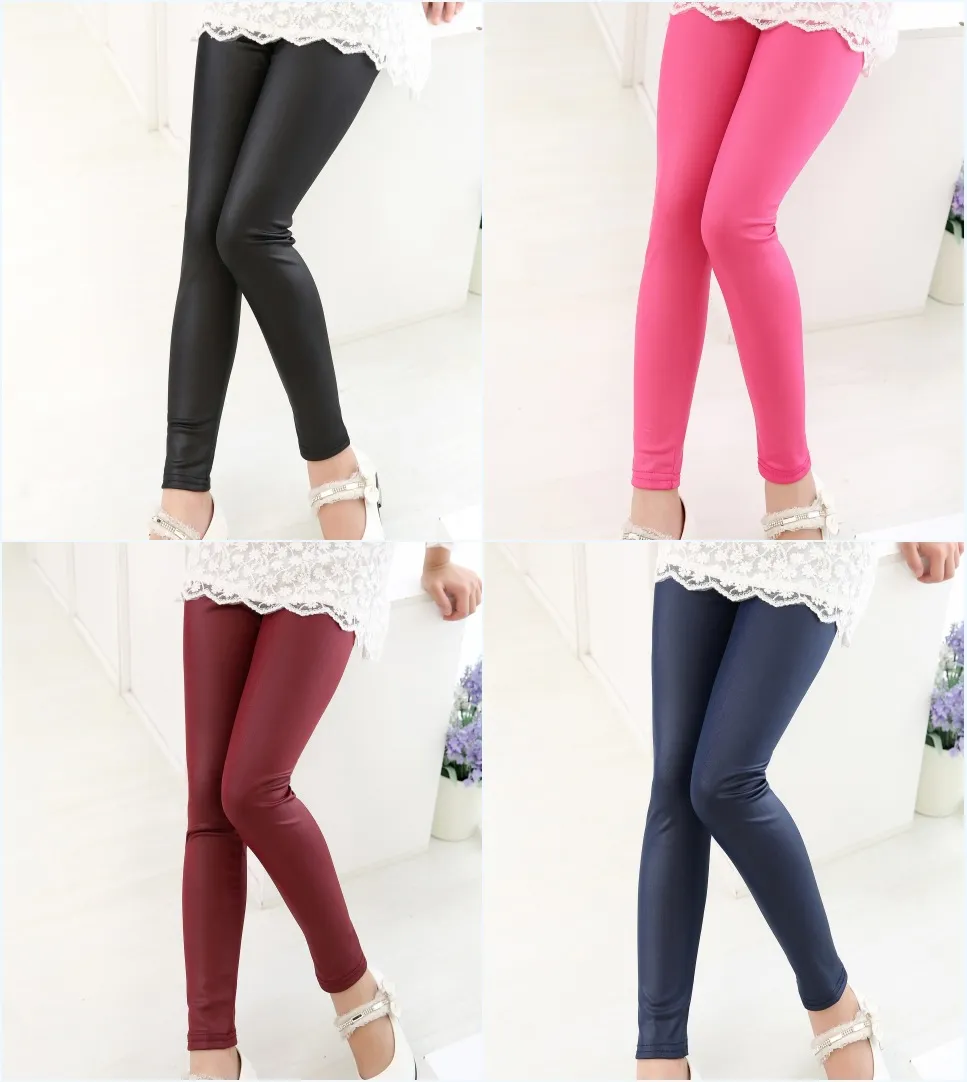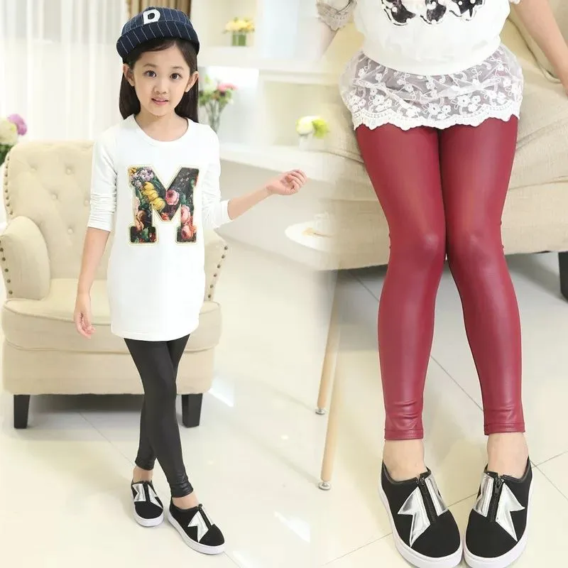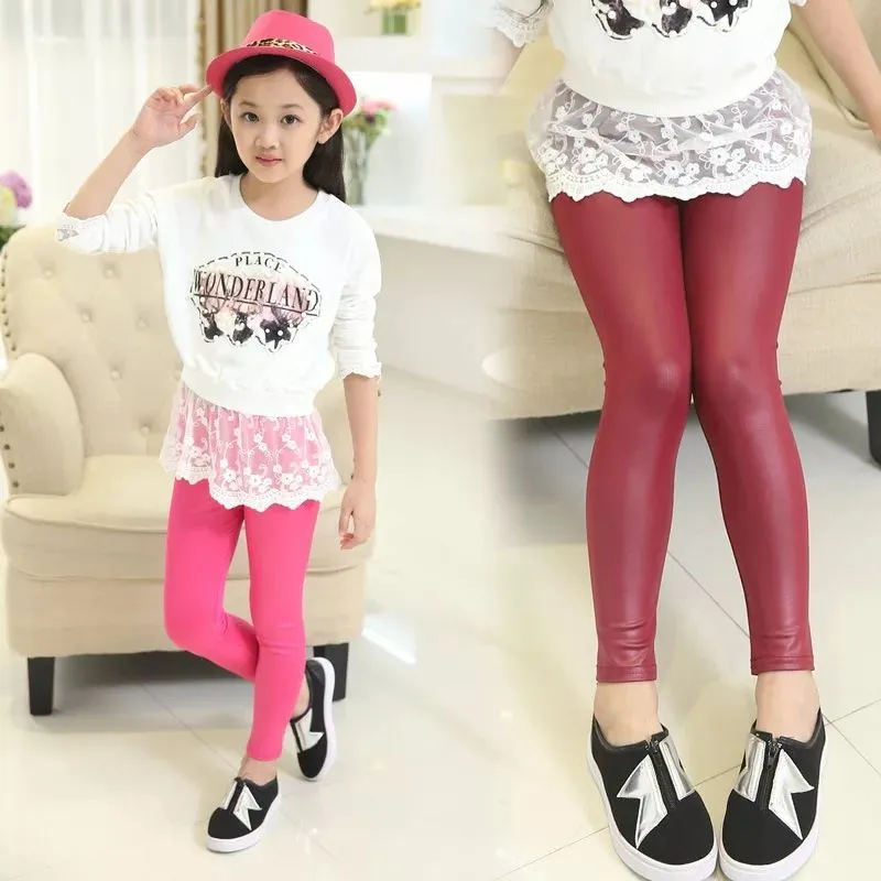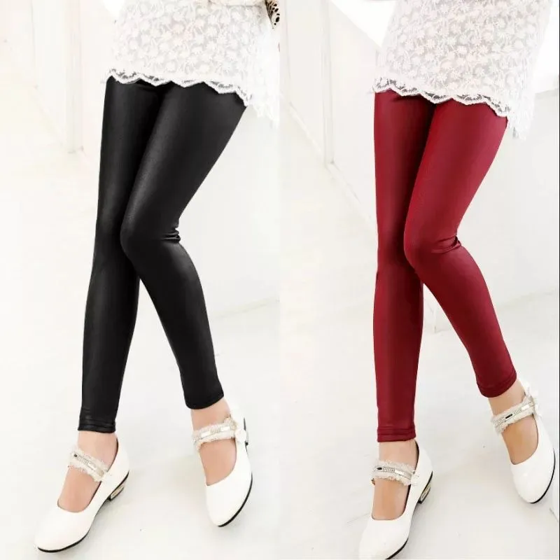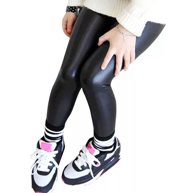 Casual style pattern leather tights inside furr for girls