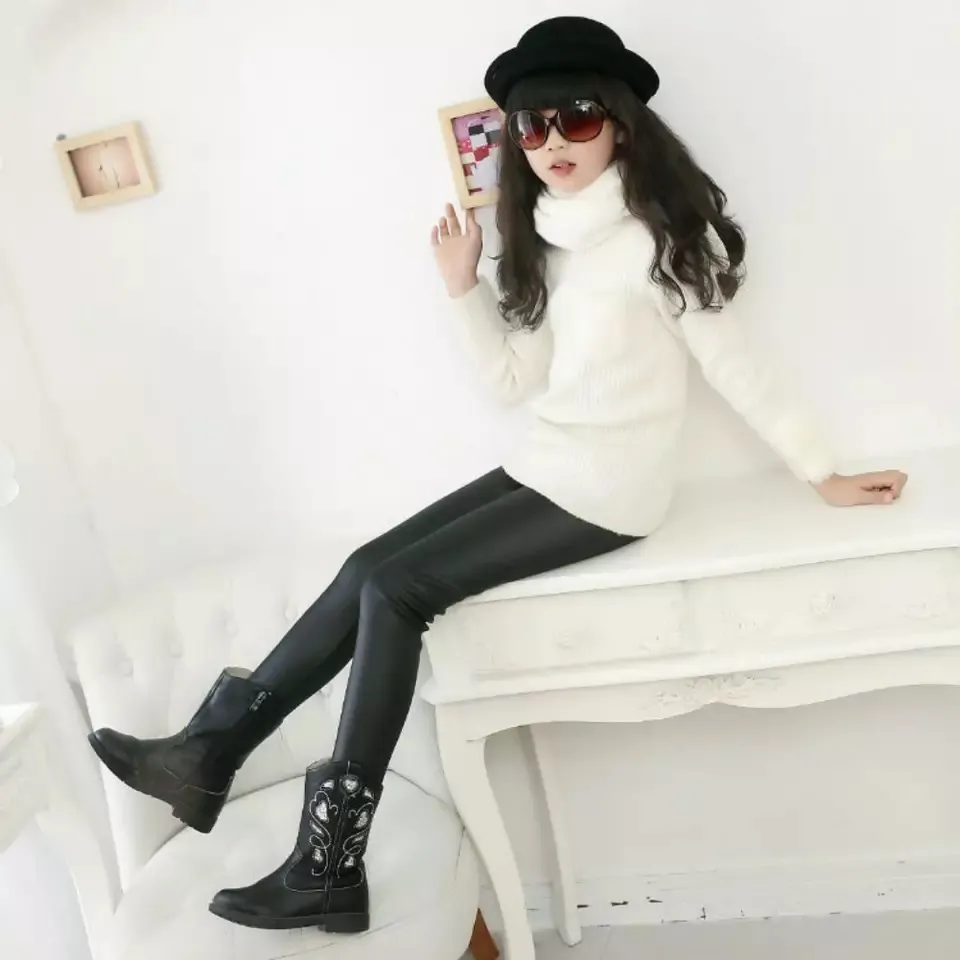 Velvet thick warm elastic waist legging for girls