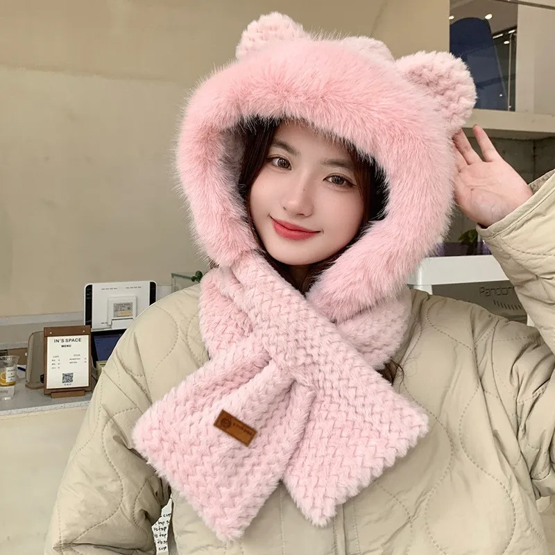 Western caps ear protection lamb hair cap with scarf for girls