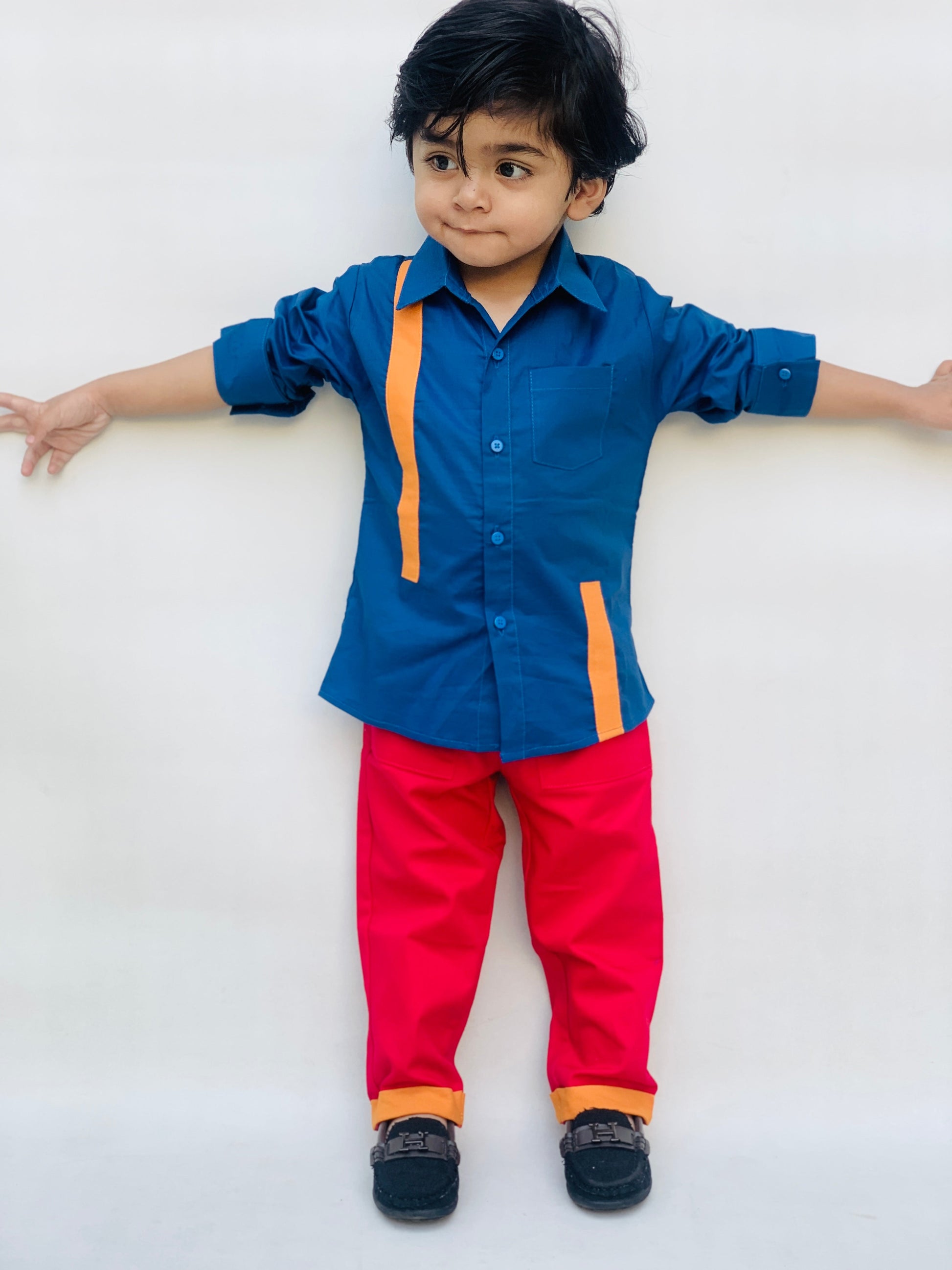 Casual style cotton shirts and pents full sleeves dress for girls and boys
