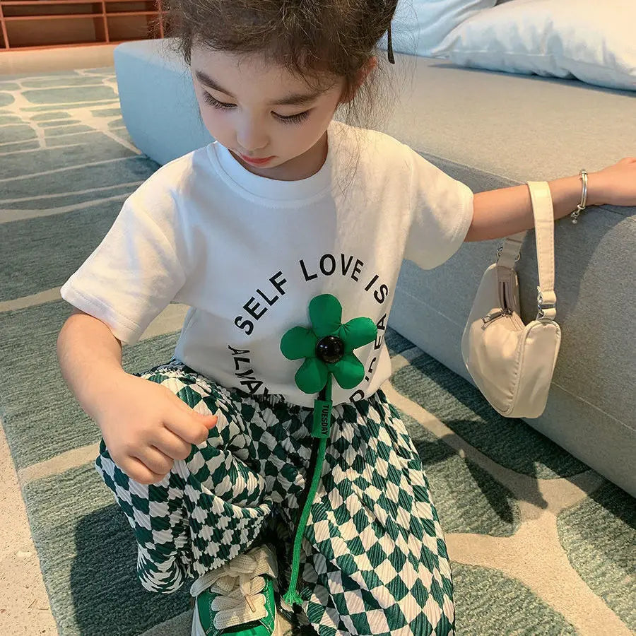 Kids clothing flower round full sleeve shirt + thin mosquito trouser for girls